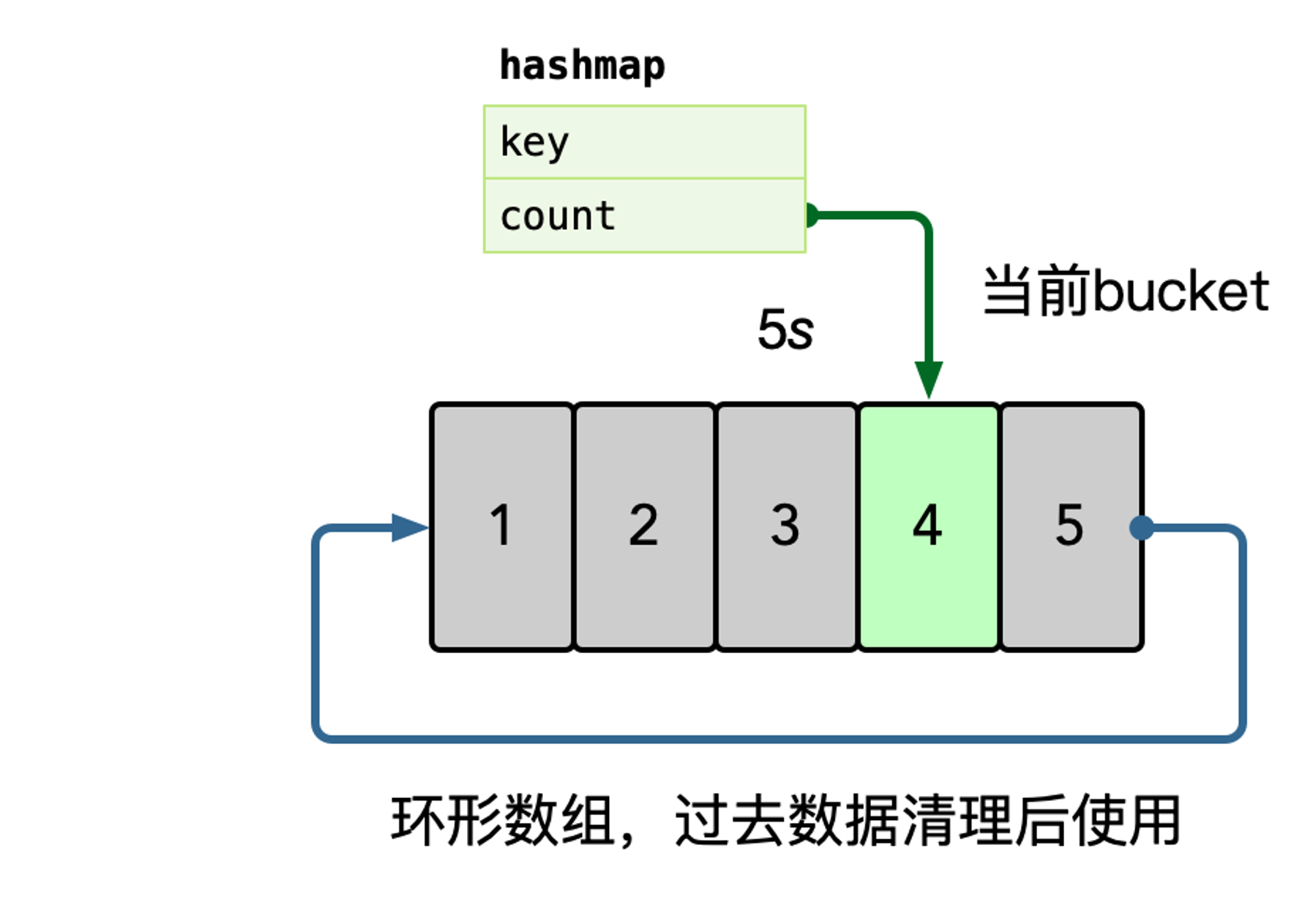 在内存中使用 hashmap 统计每个 key 的访问频次,这里可以使用滑动窗口统计,即每个窗口中,维护一个 hashmap,之后统计所有未过去的 bucket,汇总所有 key 的数据。