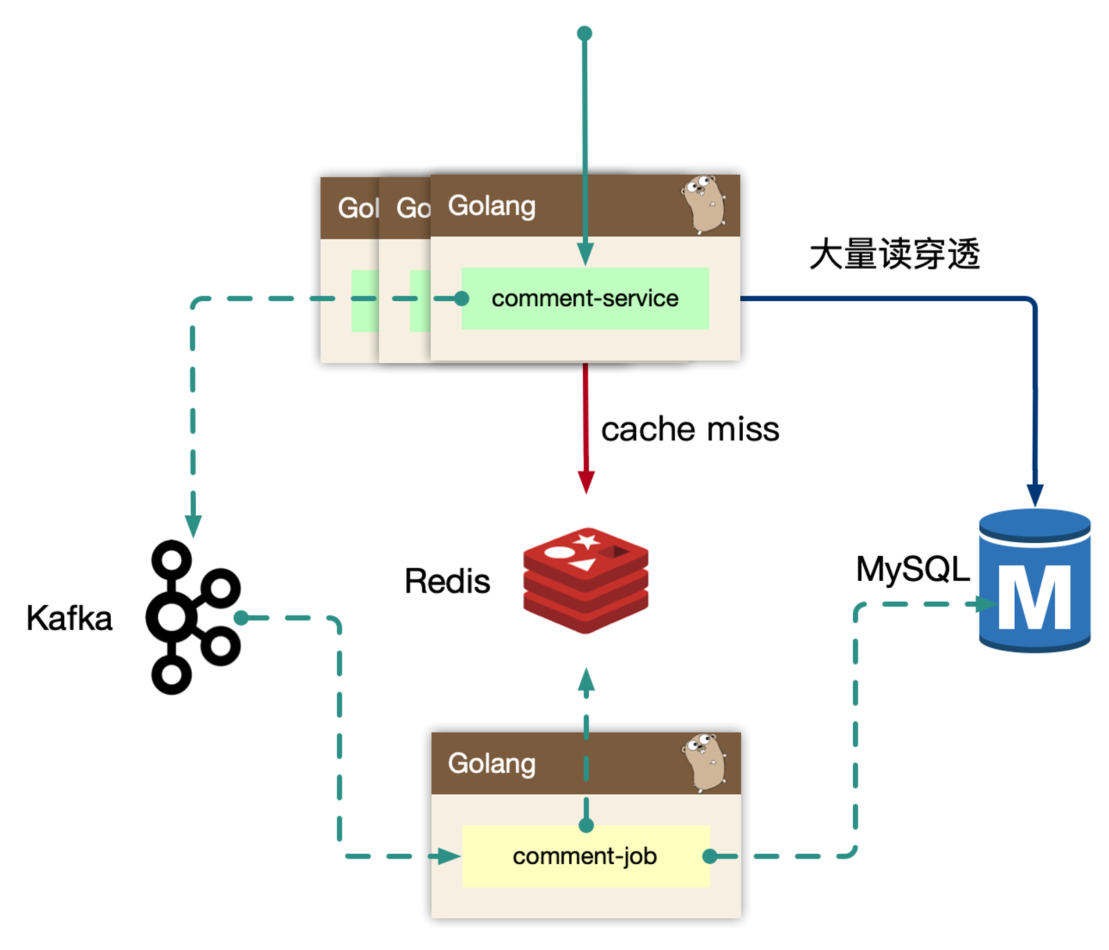 缓存和数据 交由 comment-job 去 build (由 Kafka 去抗热点的写压力 )