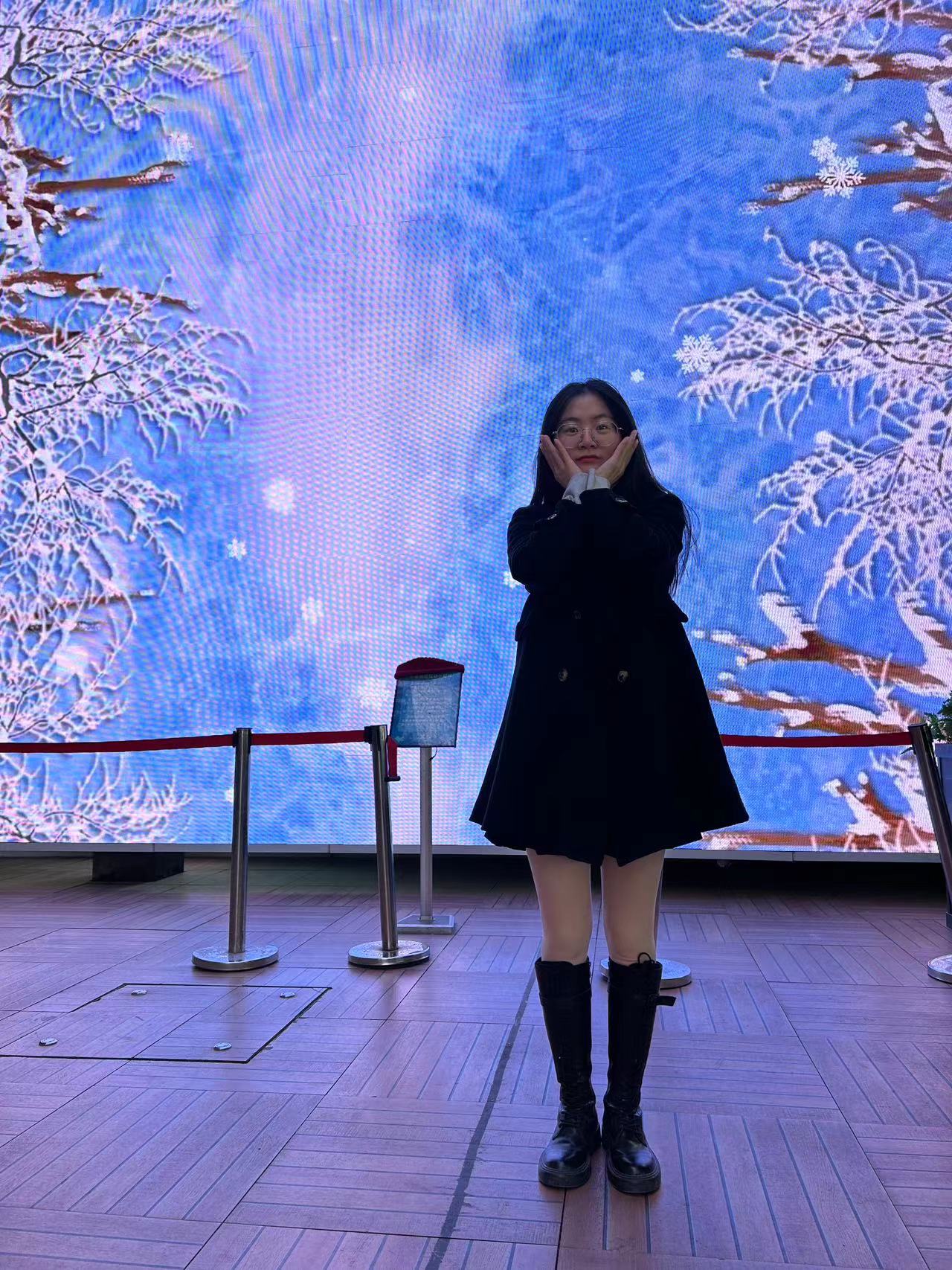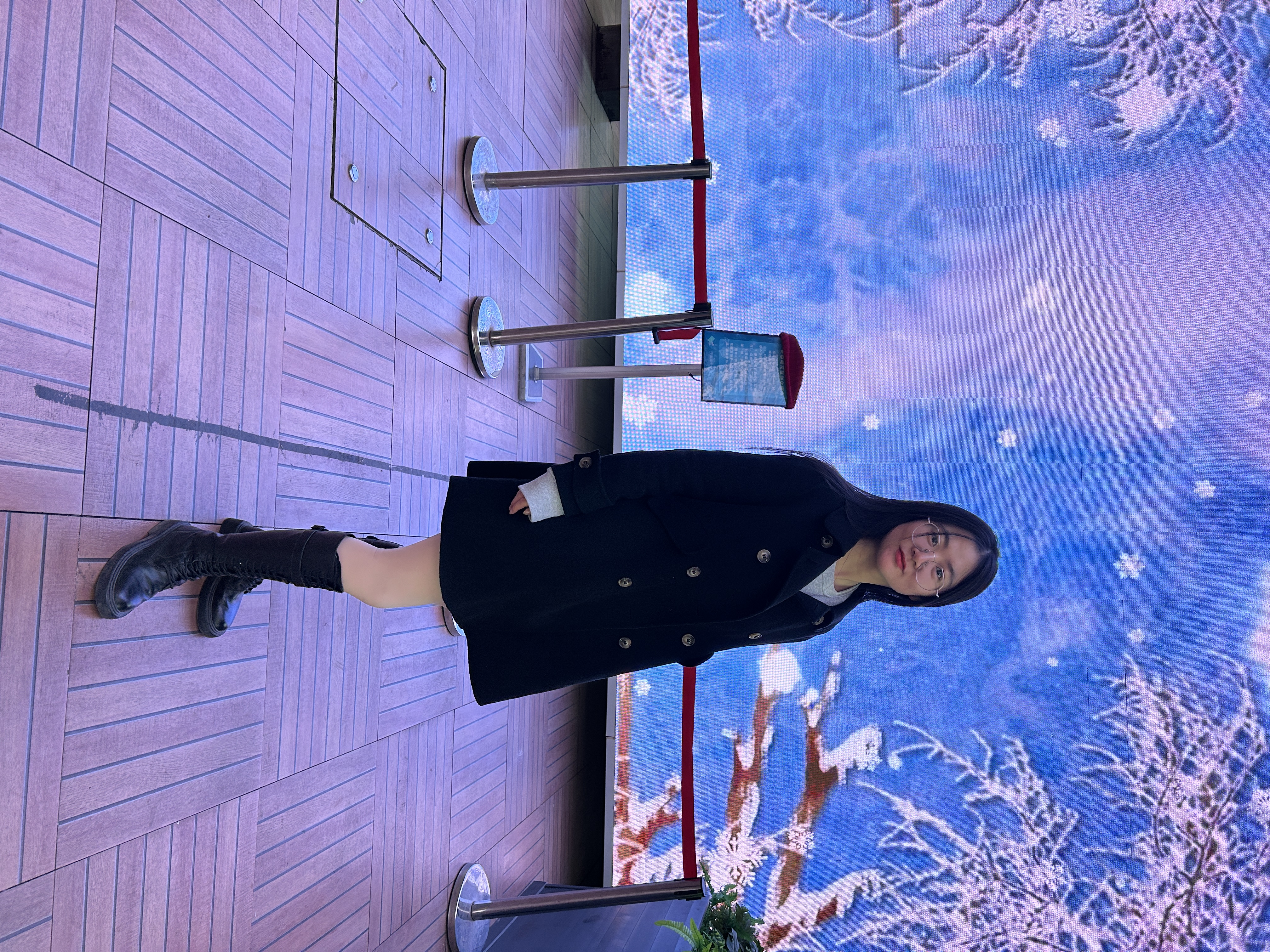 接着去买了瓶水,在灯光带下给女友拍了几张照片