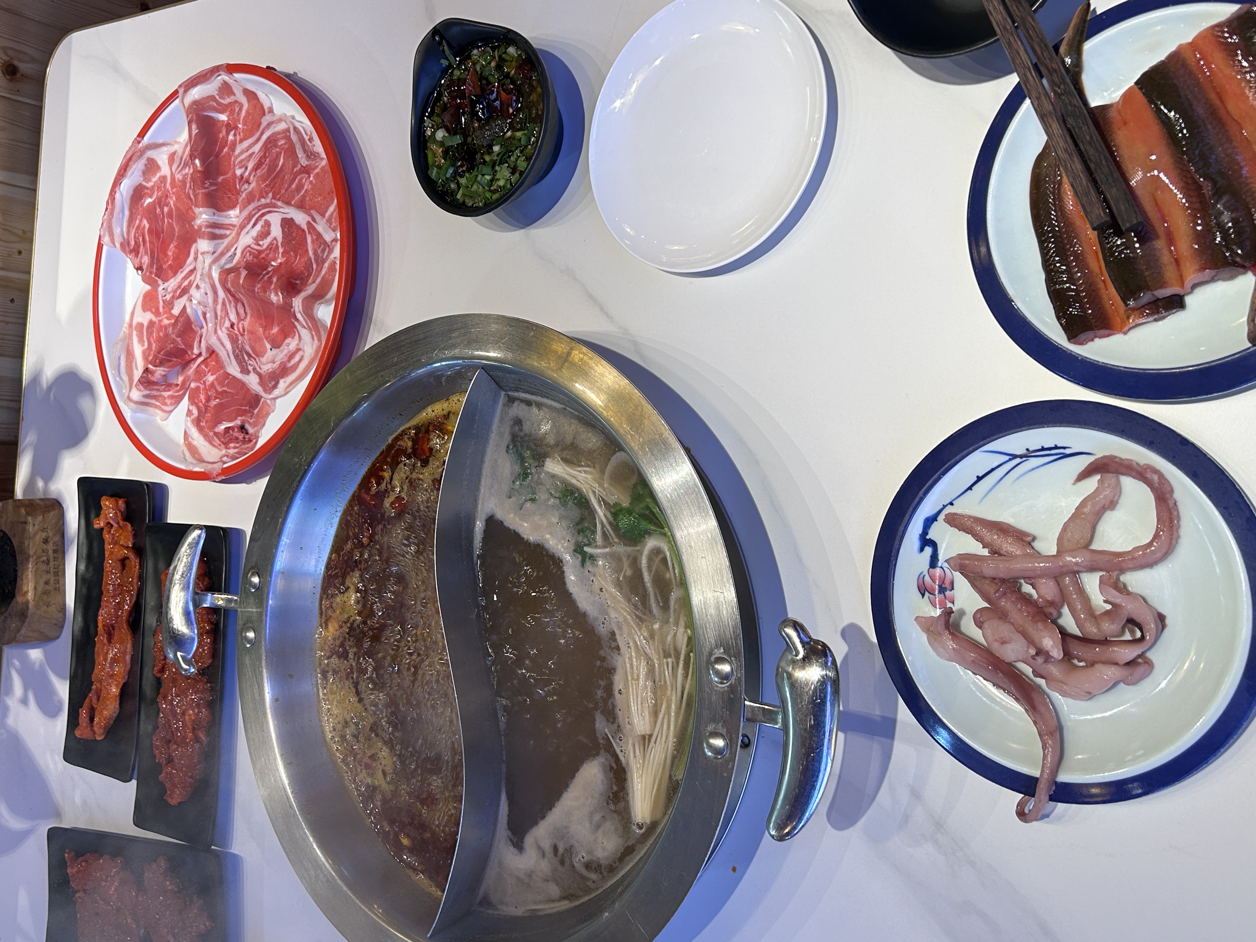 应该是吃了挺多肉,后面觉得腻歪了,遂给女友剥虾