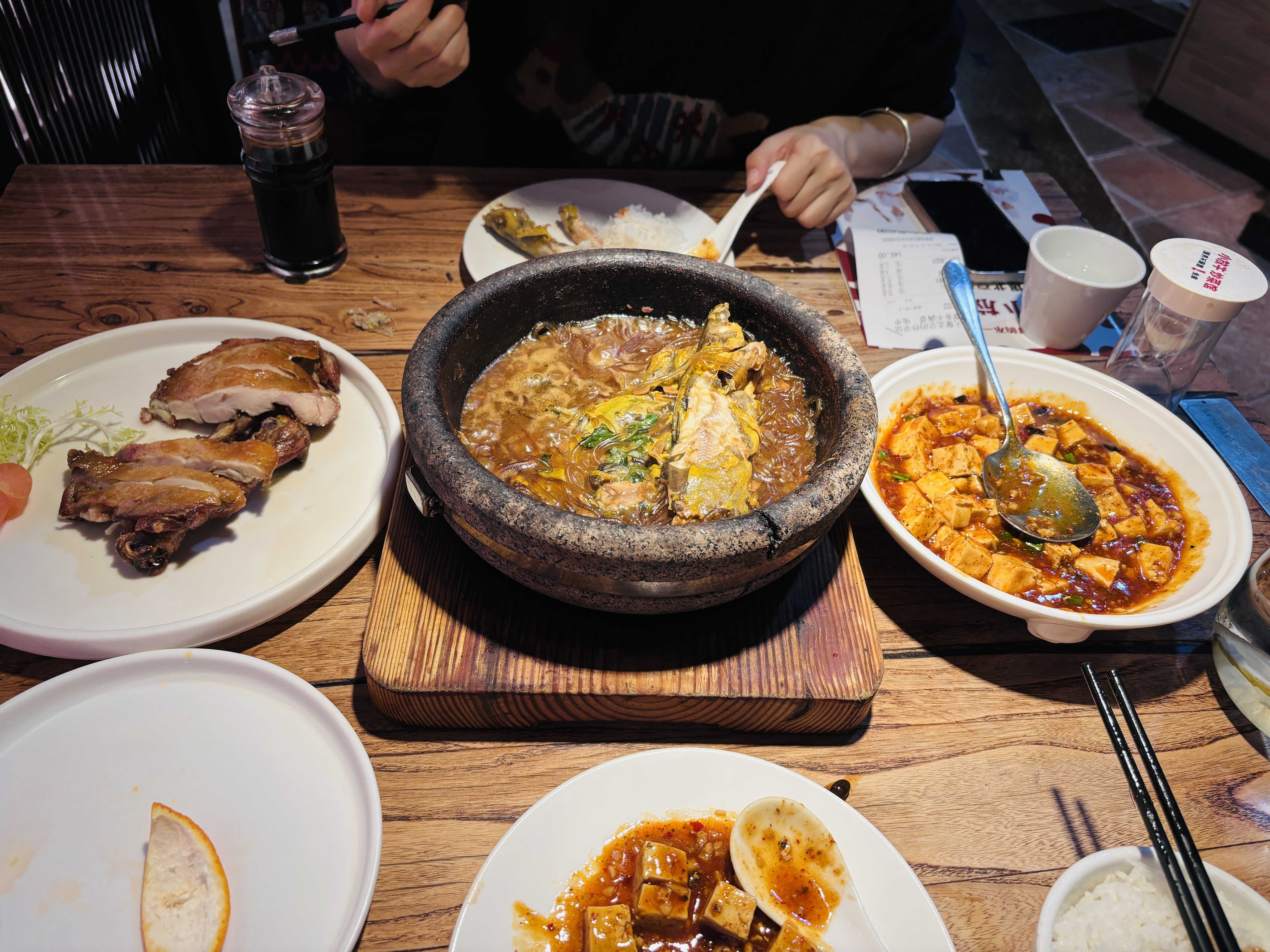 和女朋友磨了下口角,接着去了天鸿吃了河北小放牛,有三个菜:嘎嘎鱼、家常豆腐、鸡排