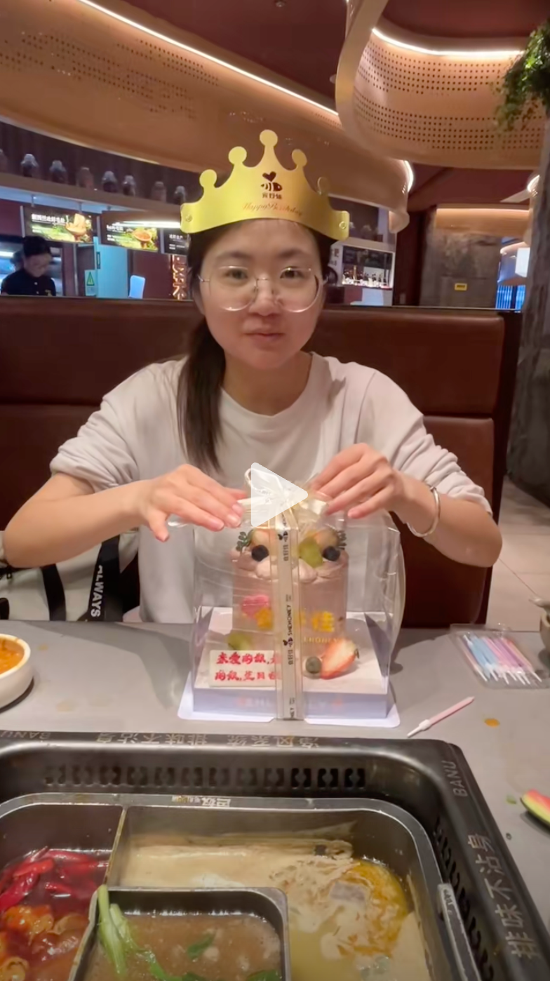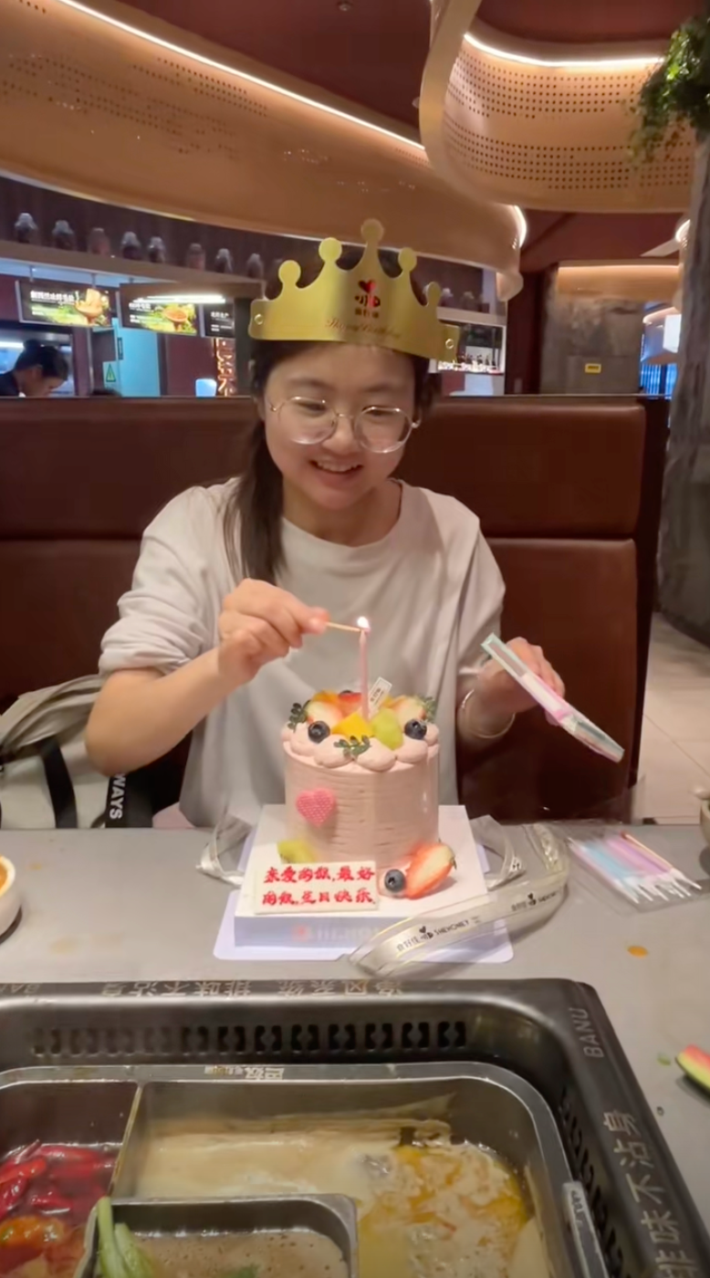 陪王彤在美乐城过生日,吃的巴奴火锅,常同学在网上预订了蛋糕,出人意料的是火锅店送了长寿面