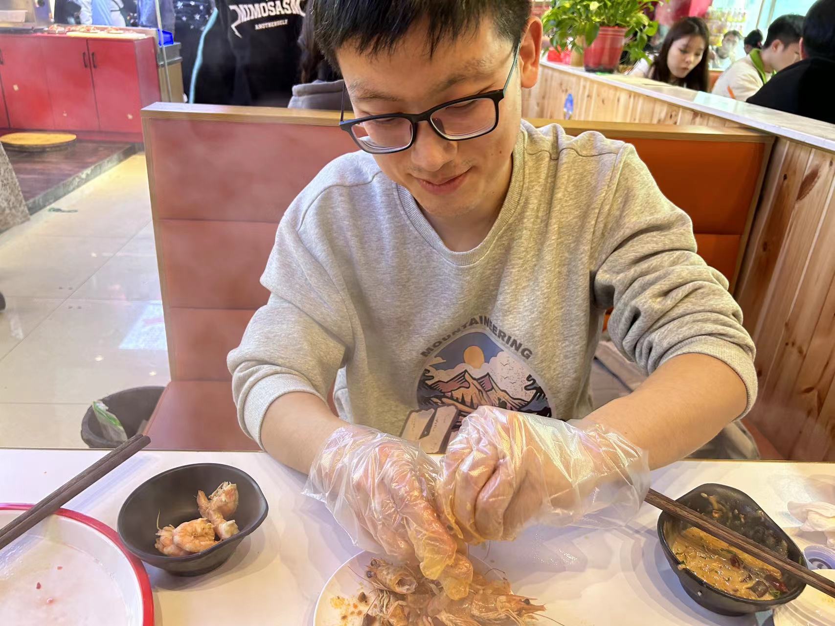 应该是吃了挺多肉,后面觉得腻歪了,遂给女友剥虾
